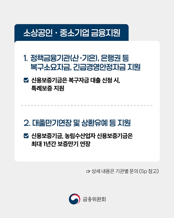 - 소상공인 재기를 위한 특별 융자 지원