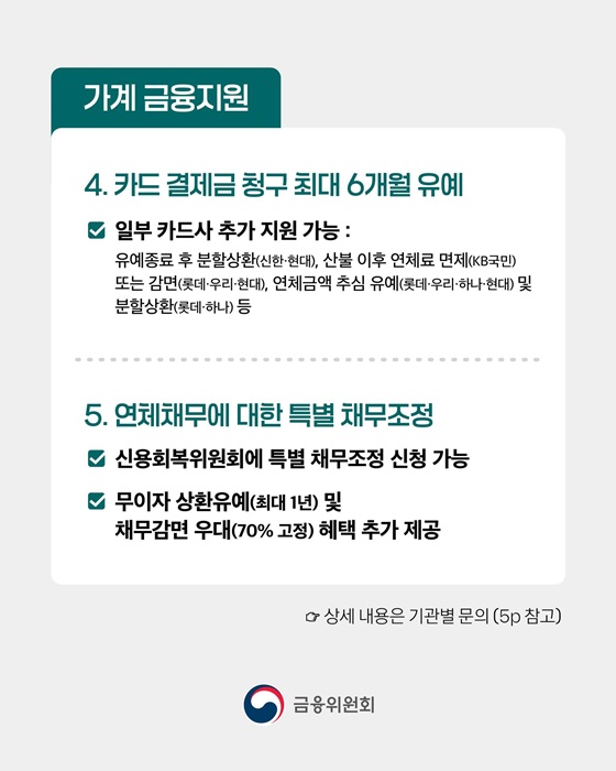 - 각종 공과금 감면 및 납부 유예